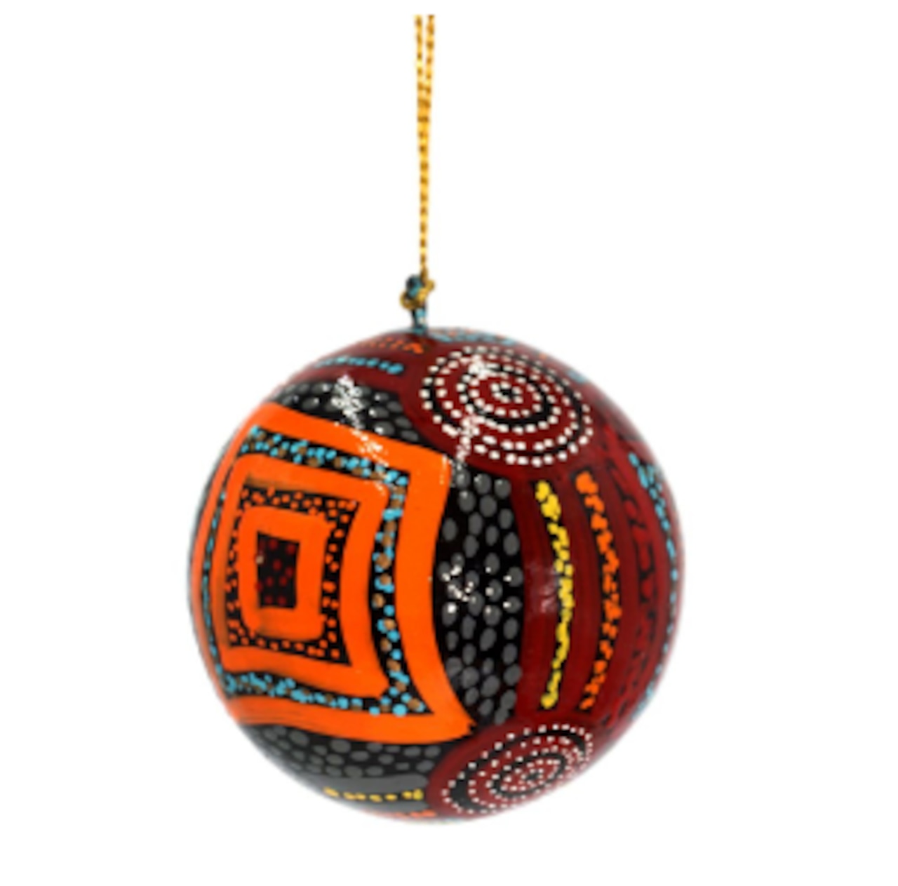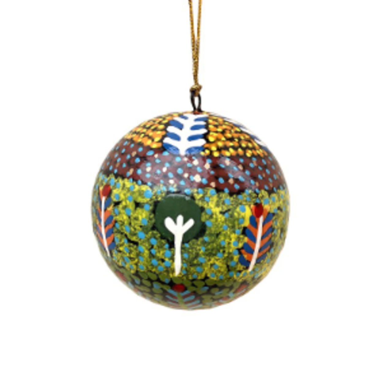 アボリジニアート柄のインテリアグッズ「ペーパーマッシュ」。